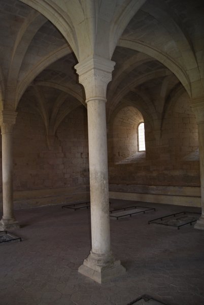 La sala capitular es un espacio de grandes proporciones, donde los monjes hoy en día se reúnen para tratar temas relacionados con su día a día o ser informados por el abad de asuntos importantes. Cuesta no imaginarse formar parte de este lugar tan solemne. Poblet cuenta con un centro de información al visitante muy completo, una hospedería externa (donde nos cuentan que las habitaciones no tienen televisión) así como una bodega. Los monjes siguen fieles al “ora et labora”. Nosotros, impregnados de belleza por los cuatro costados buscamos nuestro segundo hito.